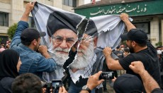 Xameneinin portreti dövlət binası qarşısında cırıldı - VİDEO
